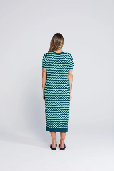 The Squiggle Dress is the dress version of our popular Squiggle Tee, and it's knitted in 100% Cotton. With a comfortable crew neckline, relaxed dropped shoulder, and ribbed hems, it offers a refreshing and relaxed vibe that you'll love.